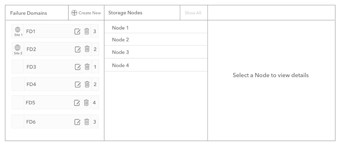 Objective: Transform failure domains from single labels on storage nodes to first-class objects. A given storage node should be able to belong to multiple failure domains by linking to multiple failure domain objects.